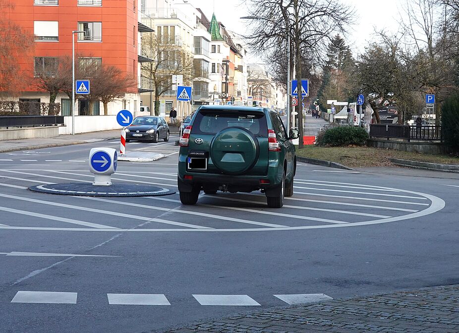 Leider hat sich der provisorische Kreisverkehr an der Olgastraße bereits als unfallauffällig herausgestellt. Die Mehrheit der Fahrzeuge überfährt die große markierte Sperrfläche und ist dadurch zu schnell unterwegs, was sich negativ auf die Sicherheit im Kreisverkehr auswirkt.
