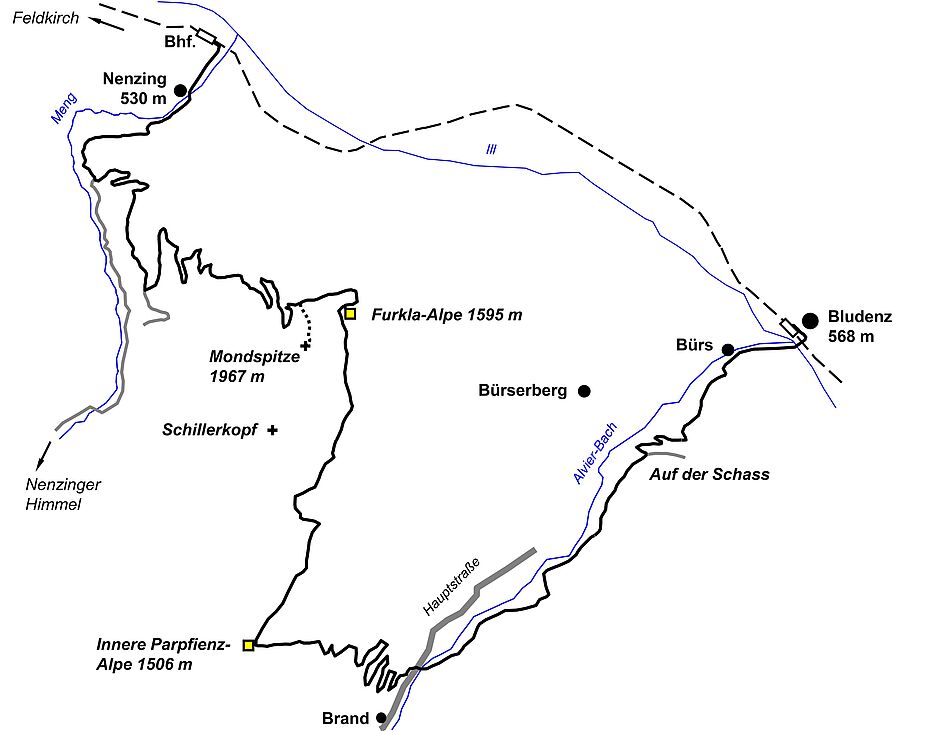 Kartenempfehlung: Kompass Wanderkarte Nr. 21 (Feldkirch – Vaduz) und Nr. 32 (Bludenz-Schruns, Klostertal), 1:50.000